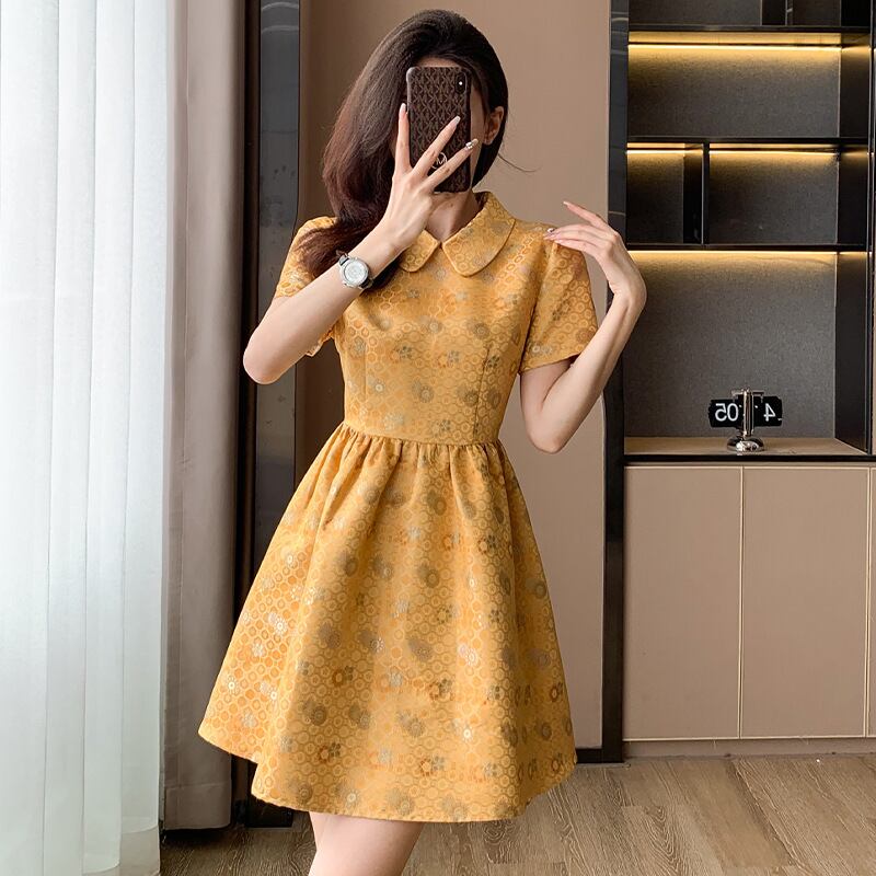 【森森家シリーズ】ワンピース POLOネック 花柄 大きいサイズ 向日葵 S M L XL 2XL