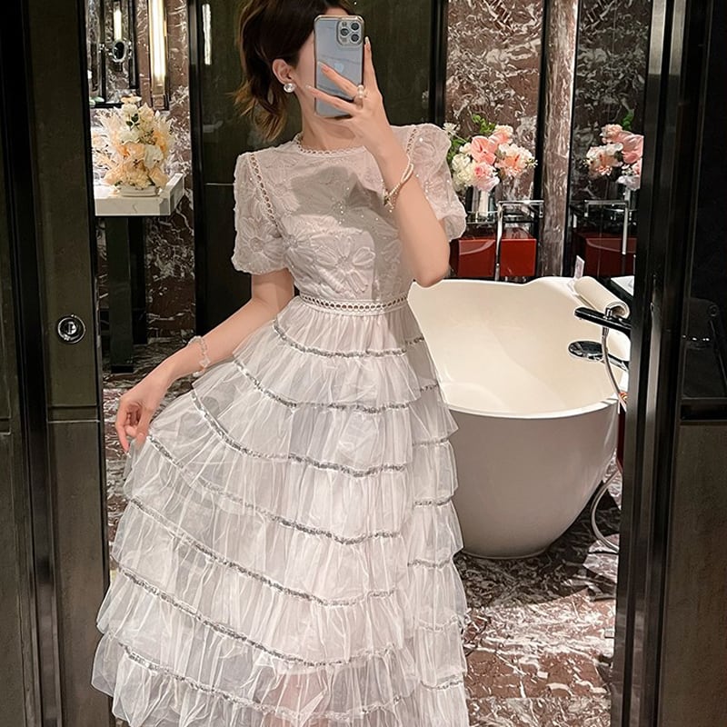 【RIMIシリーズ】ワンピース 3色展開 レース 大きいサイズ スパンコール エレガント ピンク ホワイト ブラック S M L XL 2XL