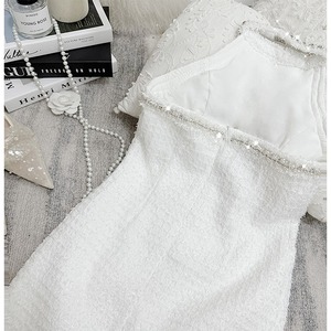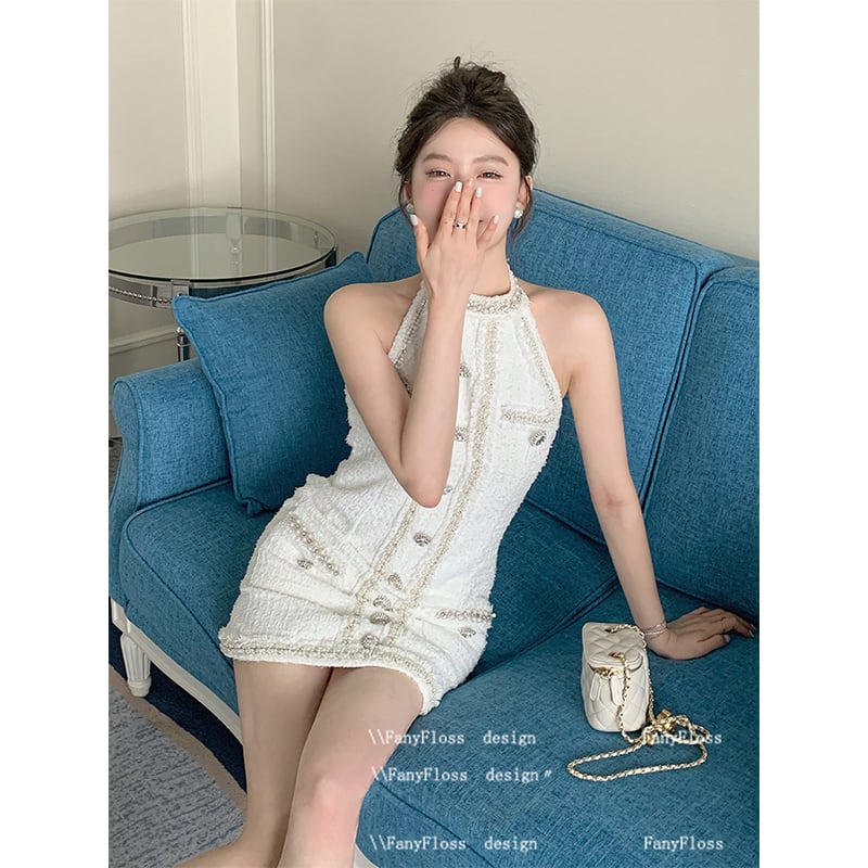【Airi Styleシリーズ】ワンピース 背見せ 韓国系 ラインストーン 個性 Aライン ノースリーブ ホワイト S M L