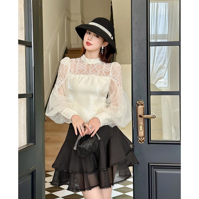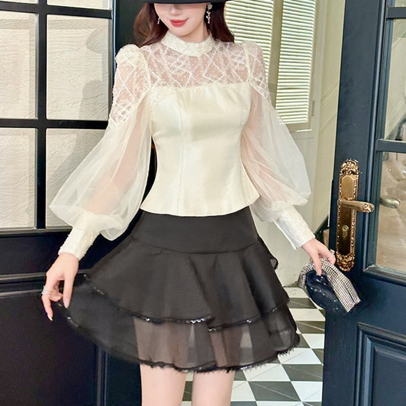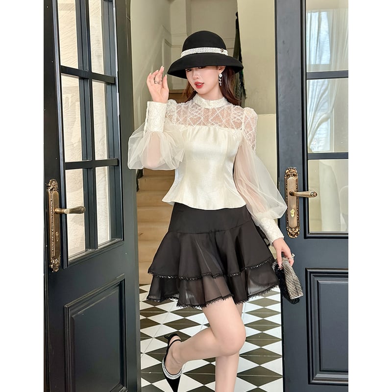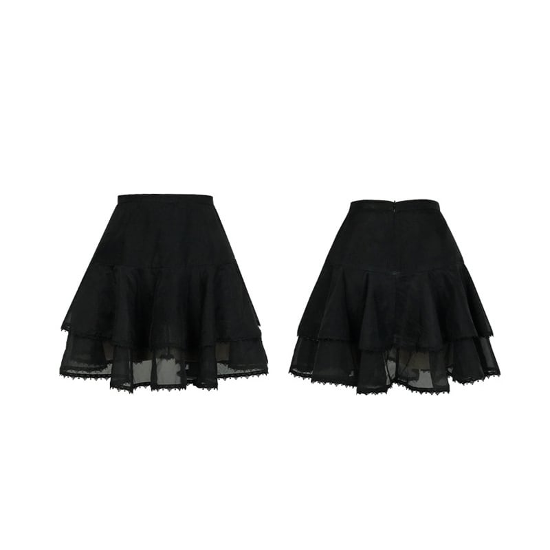 ボトムス Aライン ティアードスカート ショート丈 ブラック S M L