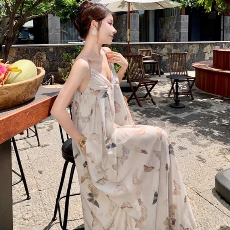 【SummerVacationシリーズ】ワンピース プリント 一目惚れ 蝶模様 清新 旅行 S M L