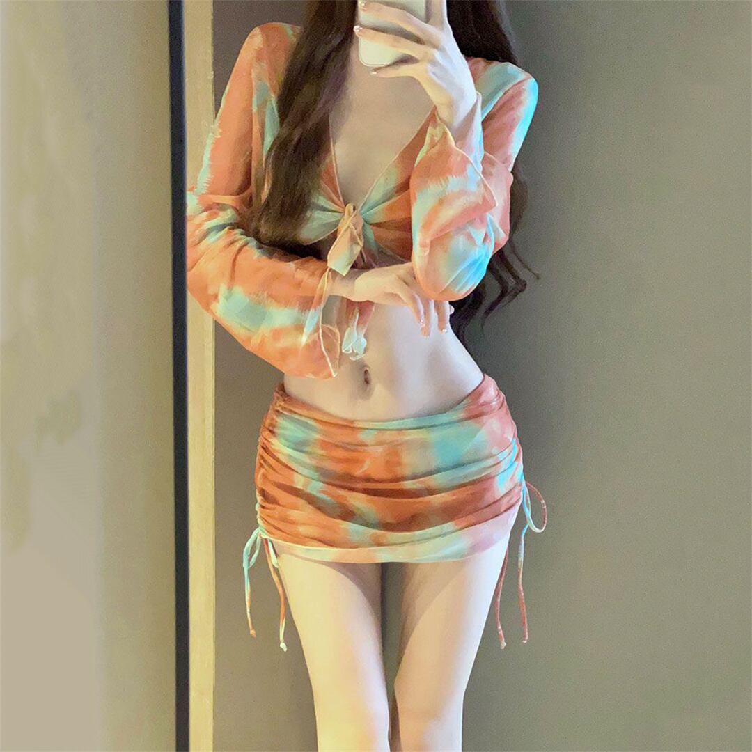 水着 4点セットアップ 温泉 ビキニ リボン 日差し防止 S M L XL