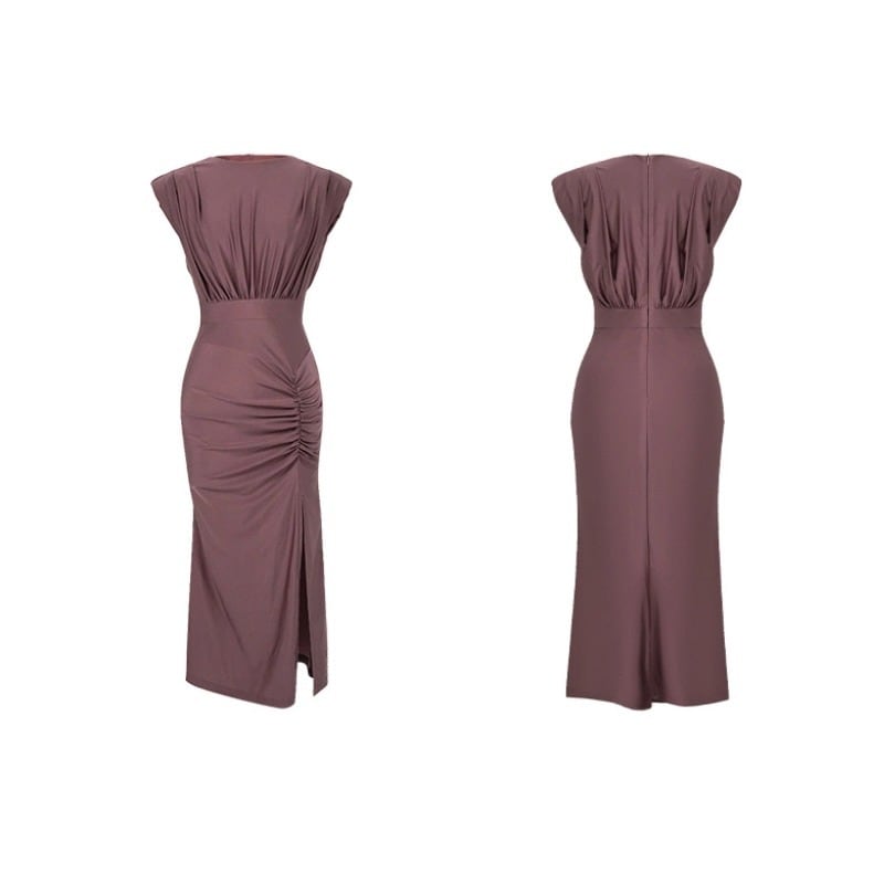 【夕暮薔薇シリーズ】ワンピース 3色展開 OL/フォーマルスリット グレー ダークパープル ピンク S M L XL 2XL