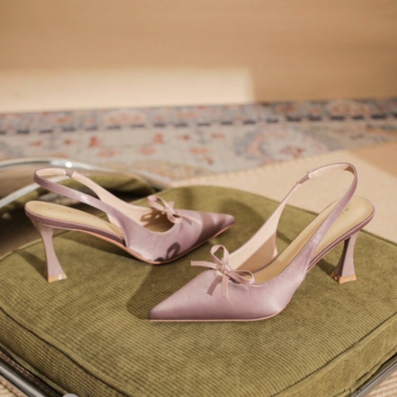 シューズ パンプス 2色展開 エレガント 通勤 無地 ブラック ライトパープル 7.5CM