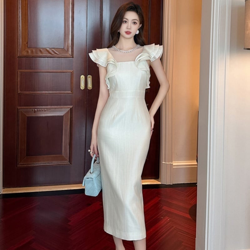 【夕暮薔薇シリーズ】ワンピース OL/フォーマル フェミニン 大きいサイズ ライトベージュ S M L XL 2XL