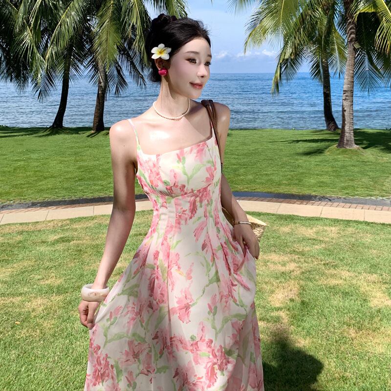 【SummerVacationシリーズ】ワンピース 花模様 ビーチ ロング丈 スウィート S M L