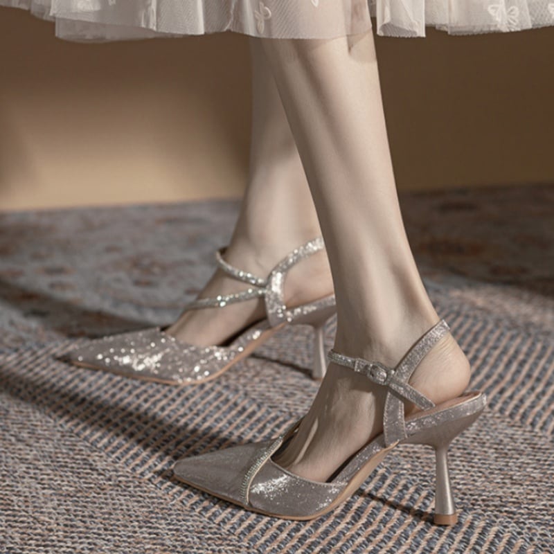 シューズ パンプス プリンセス 披露宴 キラキラ シャンパン色 8CM