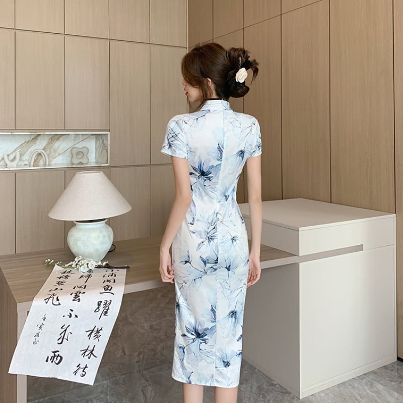 【CHERRYシリーズ】ワンピース チャイナ風 半袖 気質アップ 花模様 文芸風 S M L