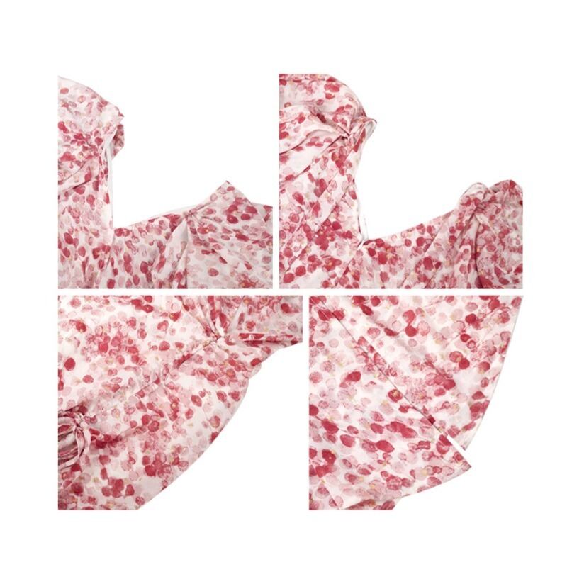 【夕暮薔薇シリーズ】ワンピース パフスリーブ プリント バックリボン 大きいサイズ S M L XL 2XL