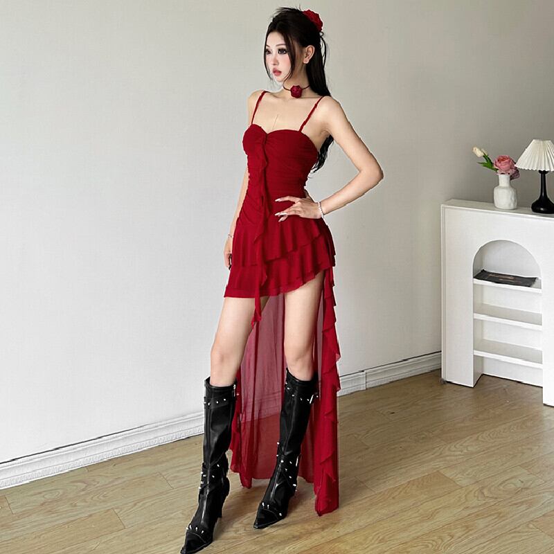 【MissJulyシリーズ】ワンピース 3色展開 セクシー ペプラム レッド ブラック ホワイト S M L