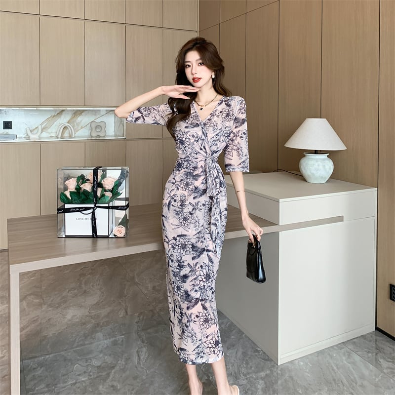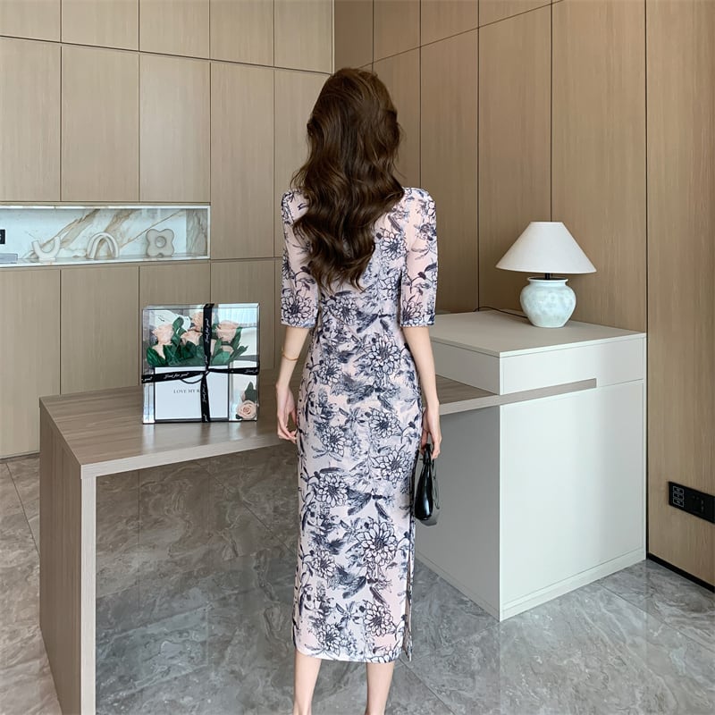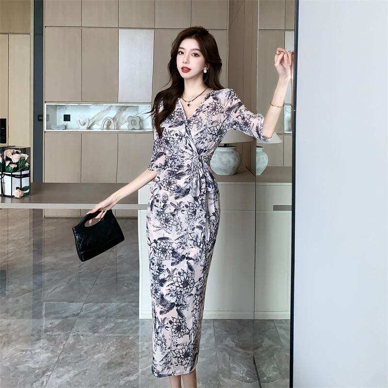 【CHERRYシリーズ】ワンピース プリント フェミニン 花柄 レトロ 着痩せ S M L XL