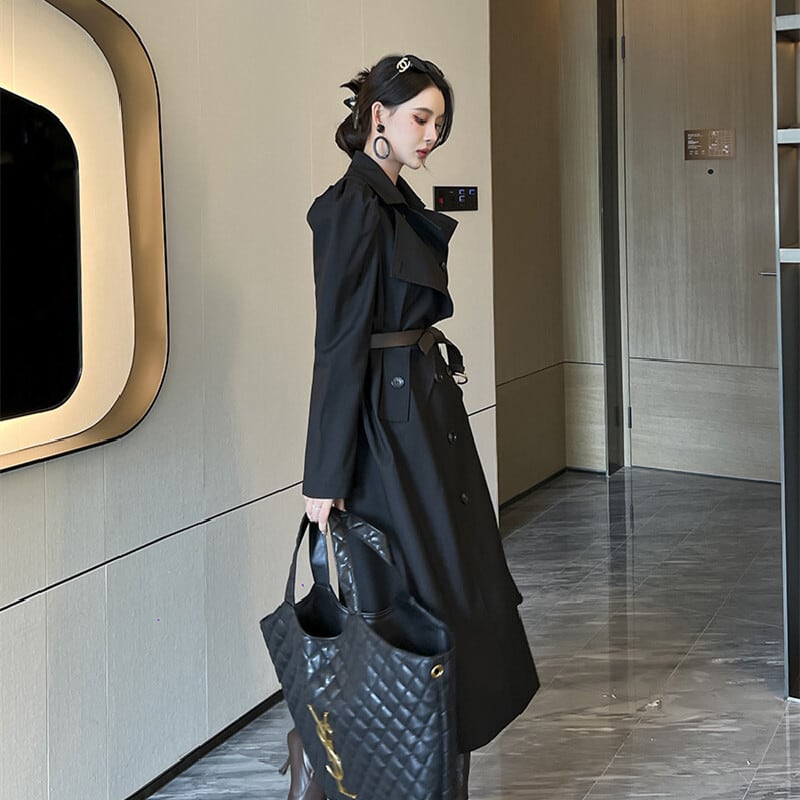 【夕暮薔薇シリーズ】アウター トレンチコート 2色展開 ダブルブレスト ブラック ダークベージュ S M L