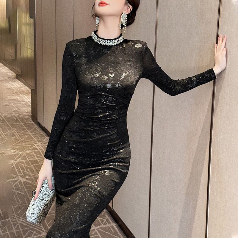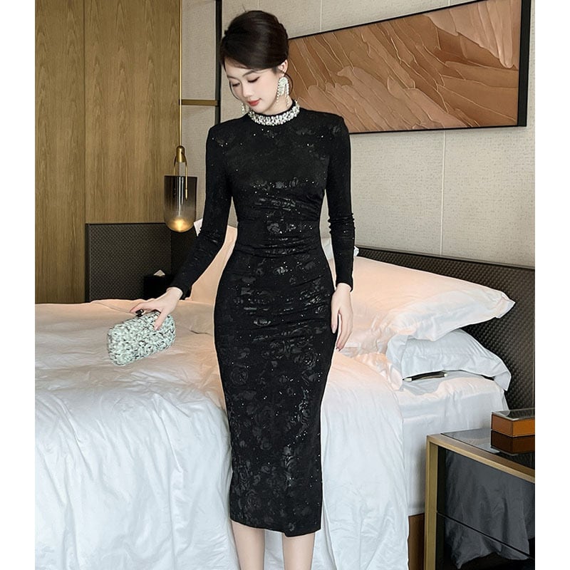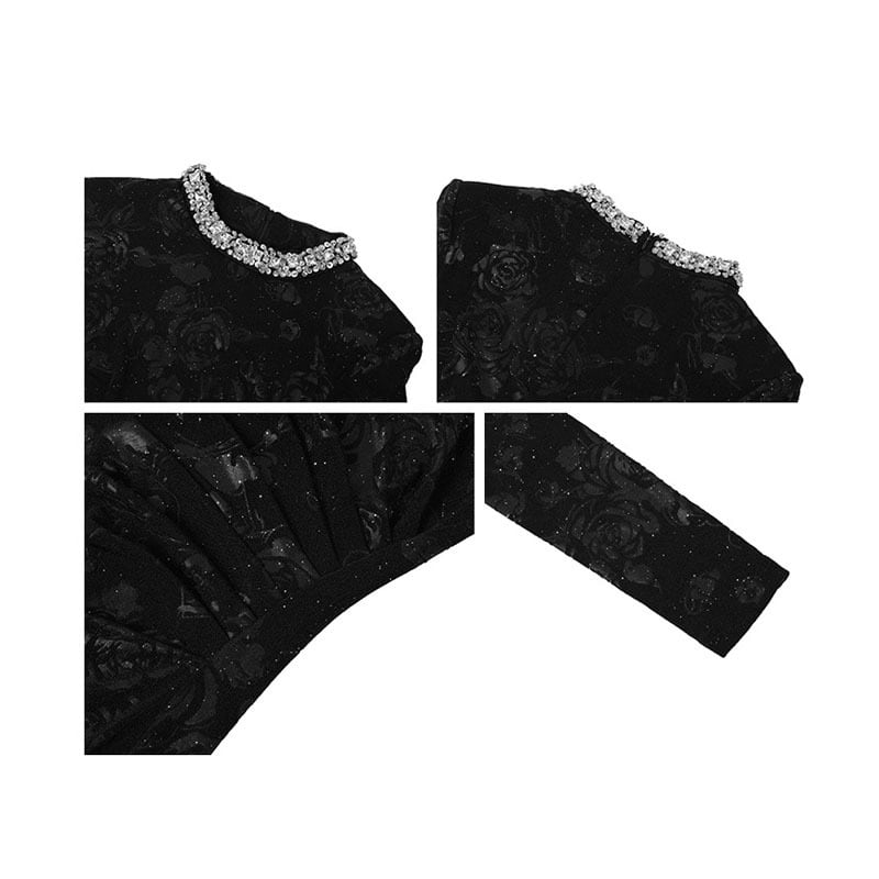 【夕暮薔薇シリーズ】ワンピース プリント ラインストーン 洗練される 大きいサイズ ブラック S M L XL 2XL