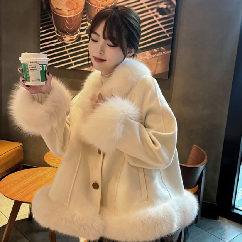 アウター コート 毛玉 ふわふわ ウール 無地 スウィート ホワイト S M L XL