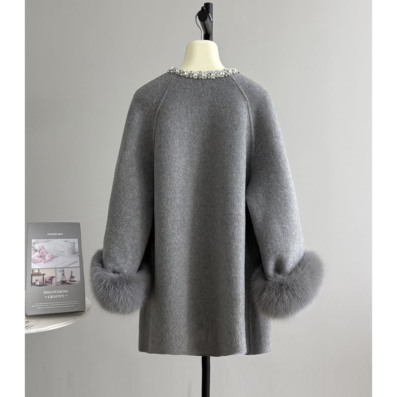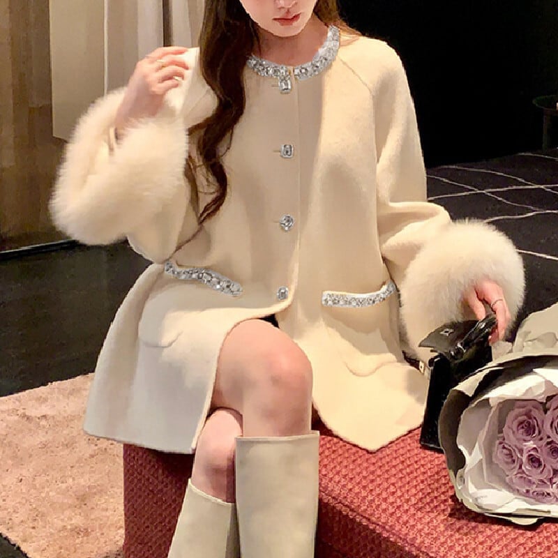 アウター コート 3色展開 シングルブレスト ラインストーン ベージュ グレー ブラック S M