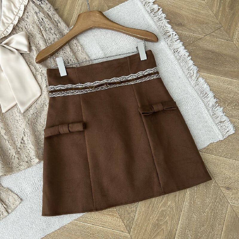 セットアップ トップス+スカート レース リボン スウィート 長袖 S M L